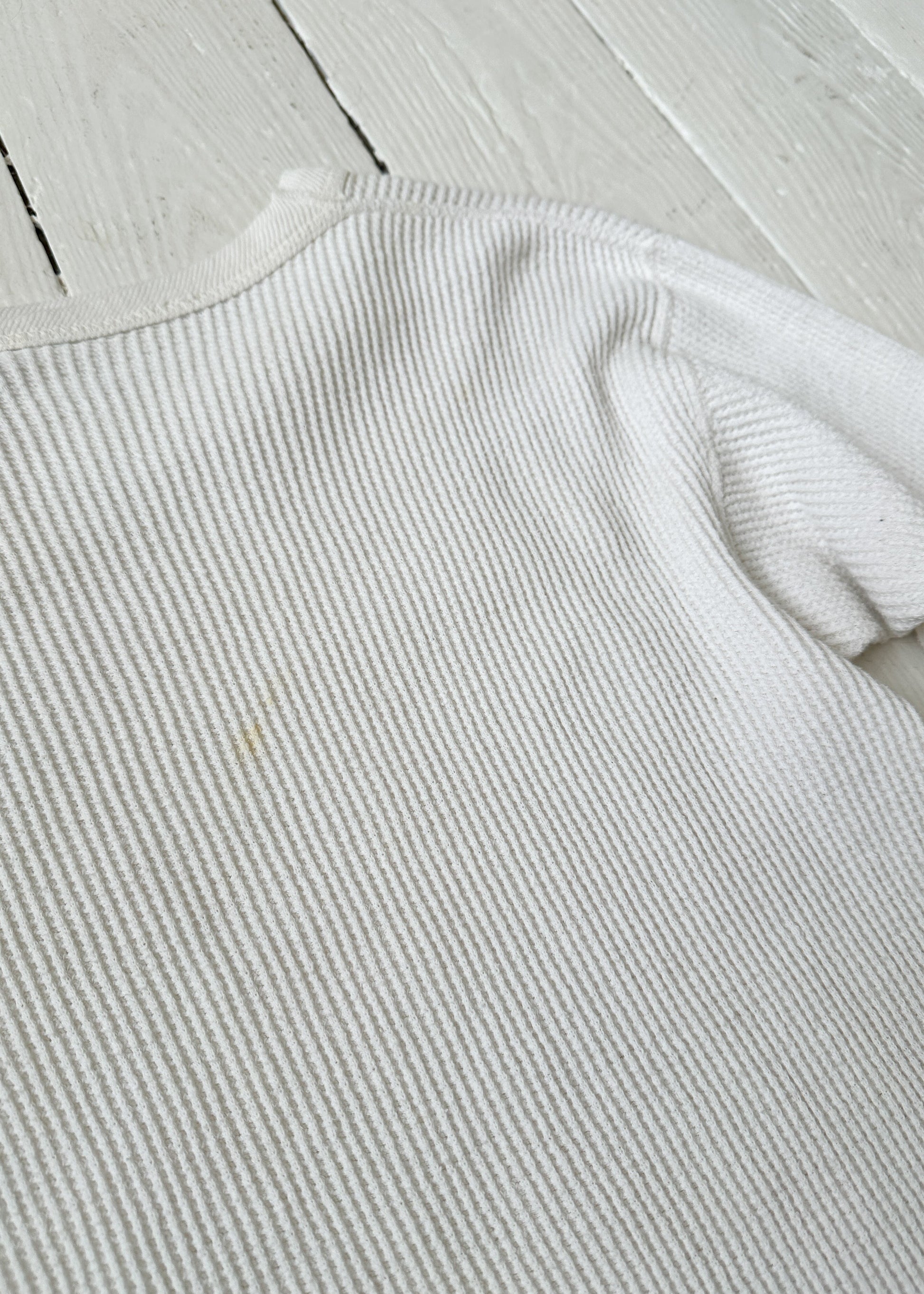 Our favorite way to layer. Looks great on its own, under a graphic tee, or paired with a cozy sweater. Soft cotton waffle knit. Some stretch. Rib knit cuffs and neck band.